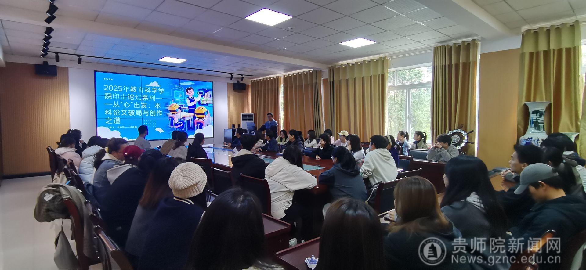 为拓展学生学术视野,营造学院学术氛围,促进师生互动交流。10月24日下午,教育科学学院在学院会议室举行2025年印山讲坛学术讲座,杨宇鑫博士以 《从“心”出发:本科论文破局与创作之道》为题,从六个方面为师生们带来一场精彩的学术讲座。