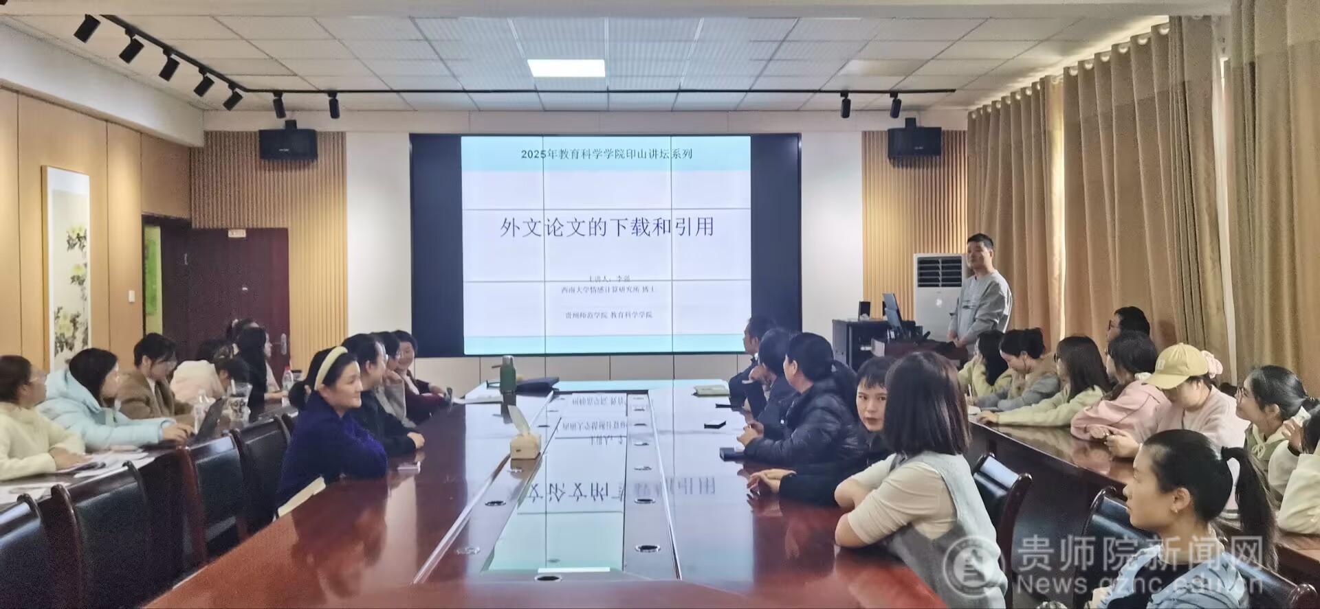 为拓展学生学术视野,营造学院学术氛围,促进师生互动交流。10月24日下午,教育科学学院在学院会议室举行2025年印山讲坛学术讲座,李强博士以 《外文论文的下载和引用》为题,为师生们带来一场精彩的学术讲座。内容涵盖介绍外文文献检索方法及全文获取方法与途径。