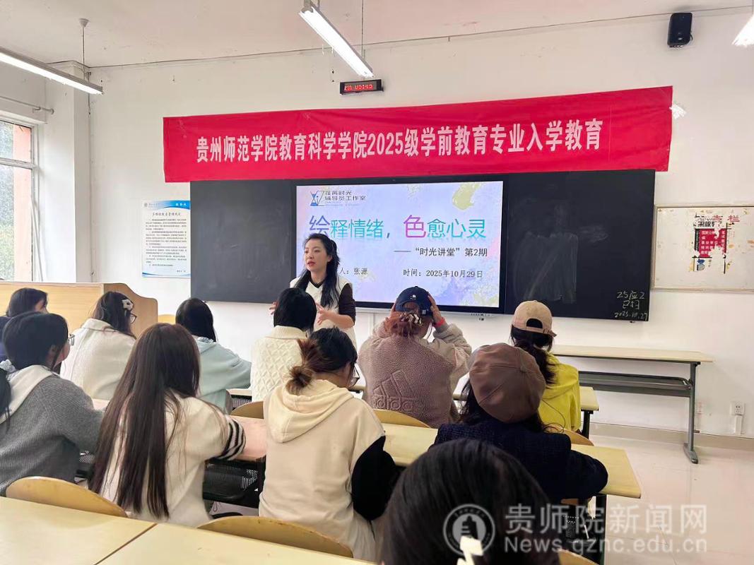 10月29日,荏苒时光辅导员工作室“时光讲堂”第二期在逸夫楼515教室温情启幕。本期讲堂以“绘释情绪,色愈心灵”为主题,由工作室核心成员、教育科学学院团委书记张源主讲,80余名学生齐聚现场,通过色彩感知与绘画创作,沉浸式学习情绪管理方法,为校园心理健康教育注入鲜活活力。