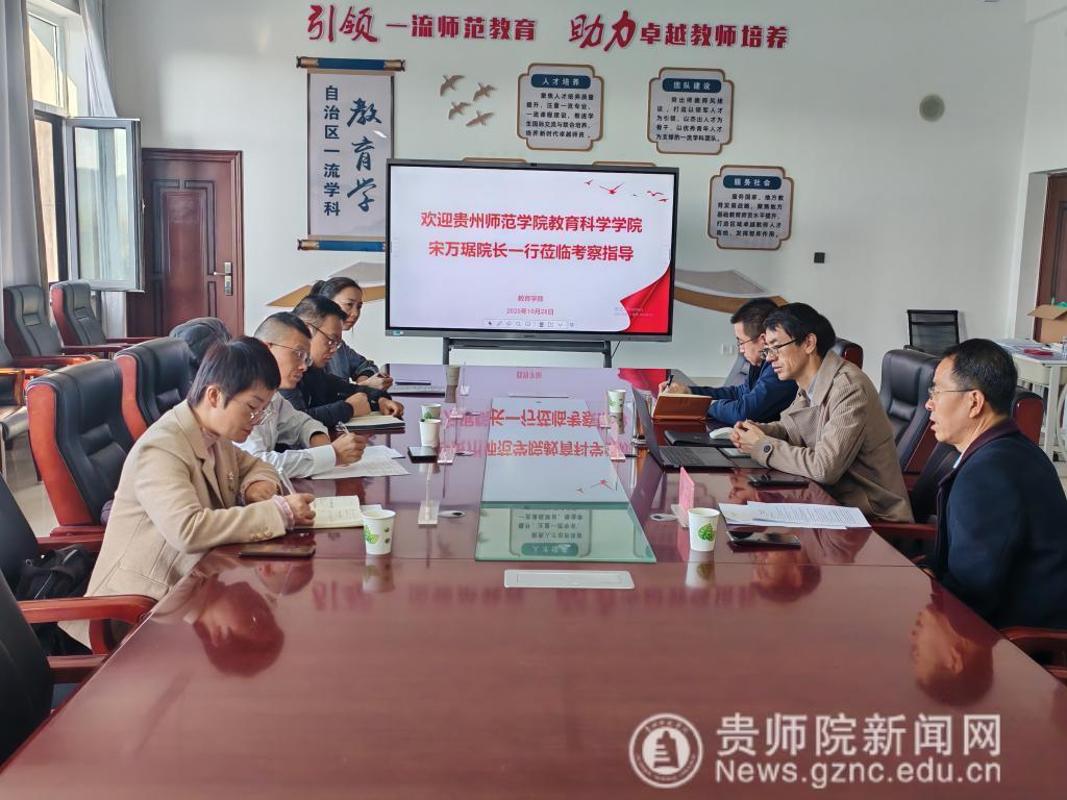为不断加强与高水平大学的合作与交流,借鉴宁夏师范大学教育学部在学科建设、教育学硕士点建设、教育硕士研究生培养等方面的先进经验,贵州师范学院教育科学学院宋万琚、罗超、吴晓英、刘晓红等一行四人于2025年10月28日到宁夏师范大学教育学部考察学习交流。