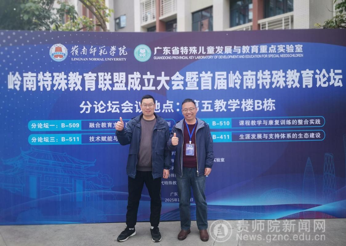 11月29-30日,岭南特殊教育联盟成立大会暨首届岭南特殊教育论坛在岭南师范学院举行。论坛以“教育强国背景下岭南特殊教育的协同与高质量发展”为主题,来自大岭南地区的十省区联盟51个理事单位代表,以及高校、特殊教育学校、普校及企业代表近200人参会。岭南师范学院党委常委、副校长唐宇,湛江市残疾人联合会党组书记、理事长李济东,湛江市教育局副局长胡德海,广东省特殊儿童发展与教育重点实验室常务副主任郑剑虹出席了会议;我校教师一行3人受邀并作为岭南特殊教育联盟理事单位参加了此次会议。