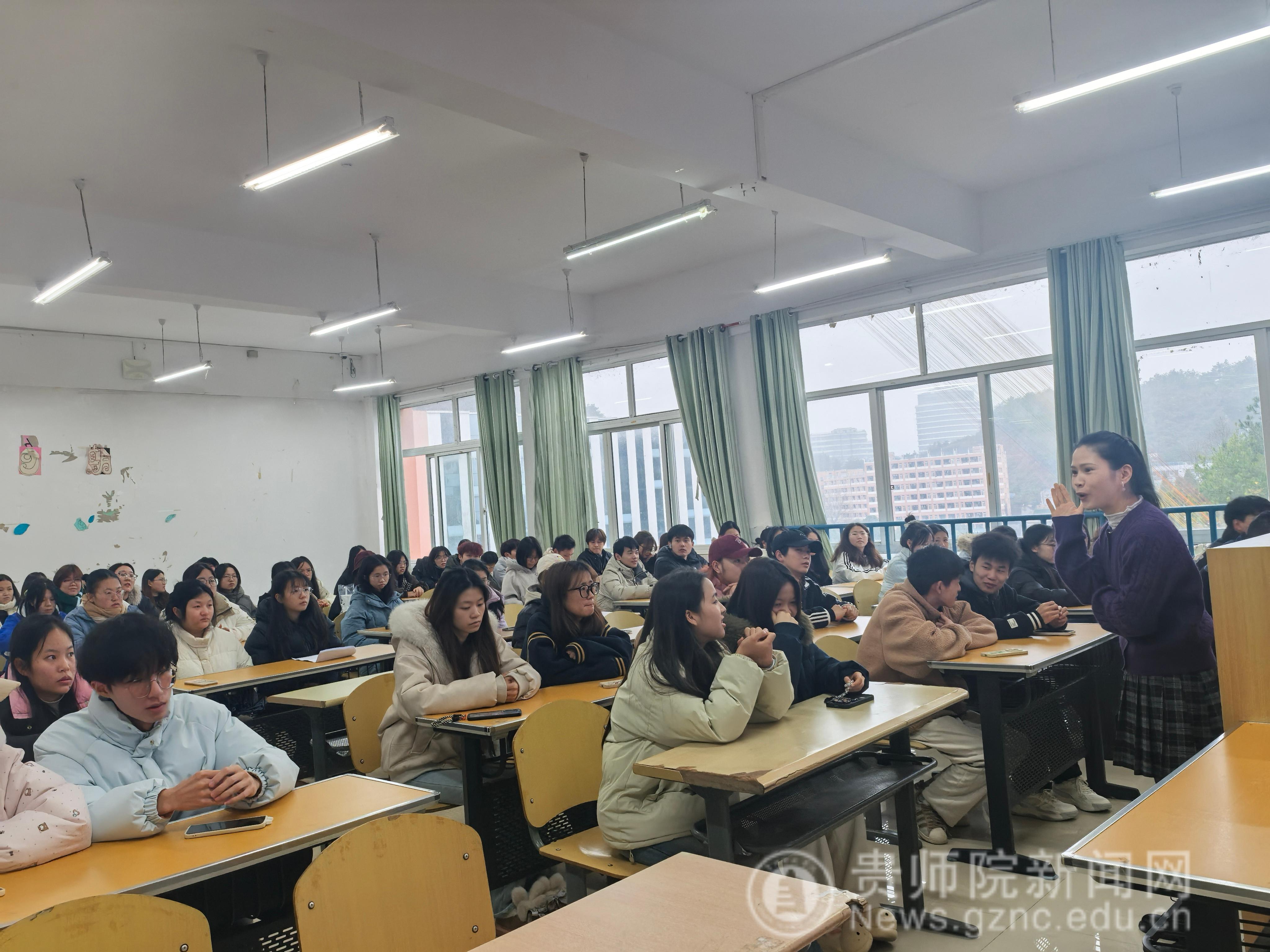 为推动贵州地方优秀文化与高校思想政治教育深度融合,将文化自信融入青年学子成长成才全过程,12月29日,荏苒时光辅导员工作室“时光讲堂”第四期活动在逸夫楼515教室顺利举办。本次讲堂以“从对话到融合——贵州四大文化工程走进思政课堂”为主题,由工作室核心成员、教育科学学院专职辅导员李琴主讲,50名师生代表齐聚现场,共赴文化浸润与思想引领的学习之旅。