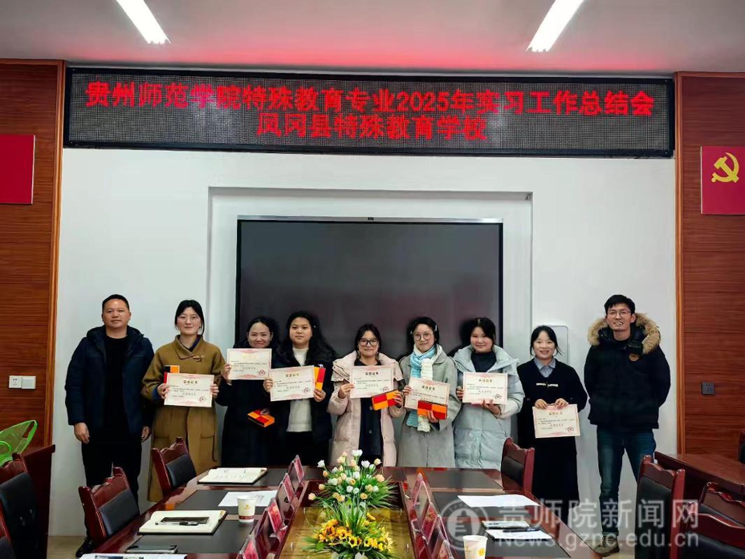 12月29日,凤冈县特殊教育学校召开2025年实习工作总结会,对贵州师范学院、辽宁特殊教育师范高等专科学校实习生工作情况进行全面总结。会议回顾与总结了实习生为期4个月的教育实习工作,对优秀实习学生进行了表扬。贵州师范学院特殊教育系安文军博士,凤冈县特殊教育学校党支部书记、校长谢奎及学校行政人员、教导处人员、实习指导老师、实习生参加会议。