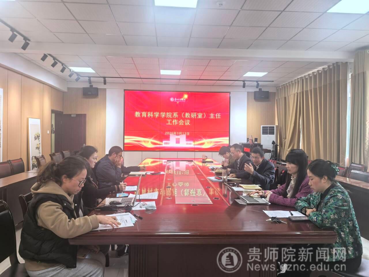 为深入推进职业教育高质量发展,优化教学管理体系,强化专业建设与成果培育,教育科学学院于2026年3月13日组织召开学院2025-2026学年第二学期期初系(教研室)主任工作会议。会议由学院副院长黎平辉主持,院长宋万琚及各系负责人、公共课教研室主任等相关人员参会。对新学期教学管理、专业建设、教学改革等重点工作进行全面部署。