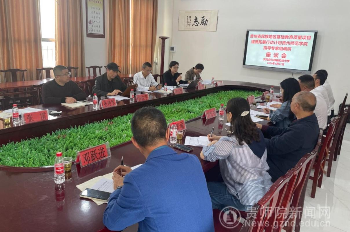 3月25日至27日,贵州师范学院作为“贵州省民族地区基础教育质量项目提质拓展行动计划(2026-2030)”专业服务高校之一,组织开展了项目县——黔西南州安龙县的实地调研工作,参加调研的专家组由教育科学学院宋万琚教授、教育科学研究所副所长张传军教授、继续教育学院副院长何荣副教授、教育科学学院吴晓英教授、数学与大数据学院张雷博士、原贵阳九中校长杨佐宇等组成。