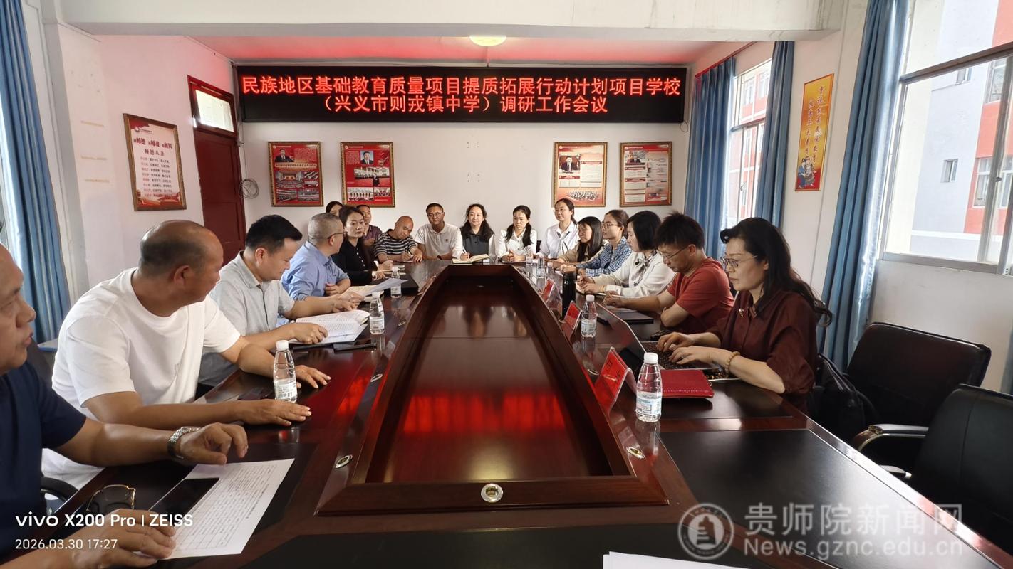 3月29日至31日,为推动“贵州省民族地区基础教育质量项目提质拓展行动计划”高校专业服务工作,教育科学学院组织校内外专家赴项目县兴义市开展实地调研,省教育科学院杨立昌教授,教育科学学院宋万琚教授和吴晓英教授,继续教育学院何荣副教授,观山湖区逸都国际学校原校长、正高级教师郑兵等6位专家参加了本次调研。