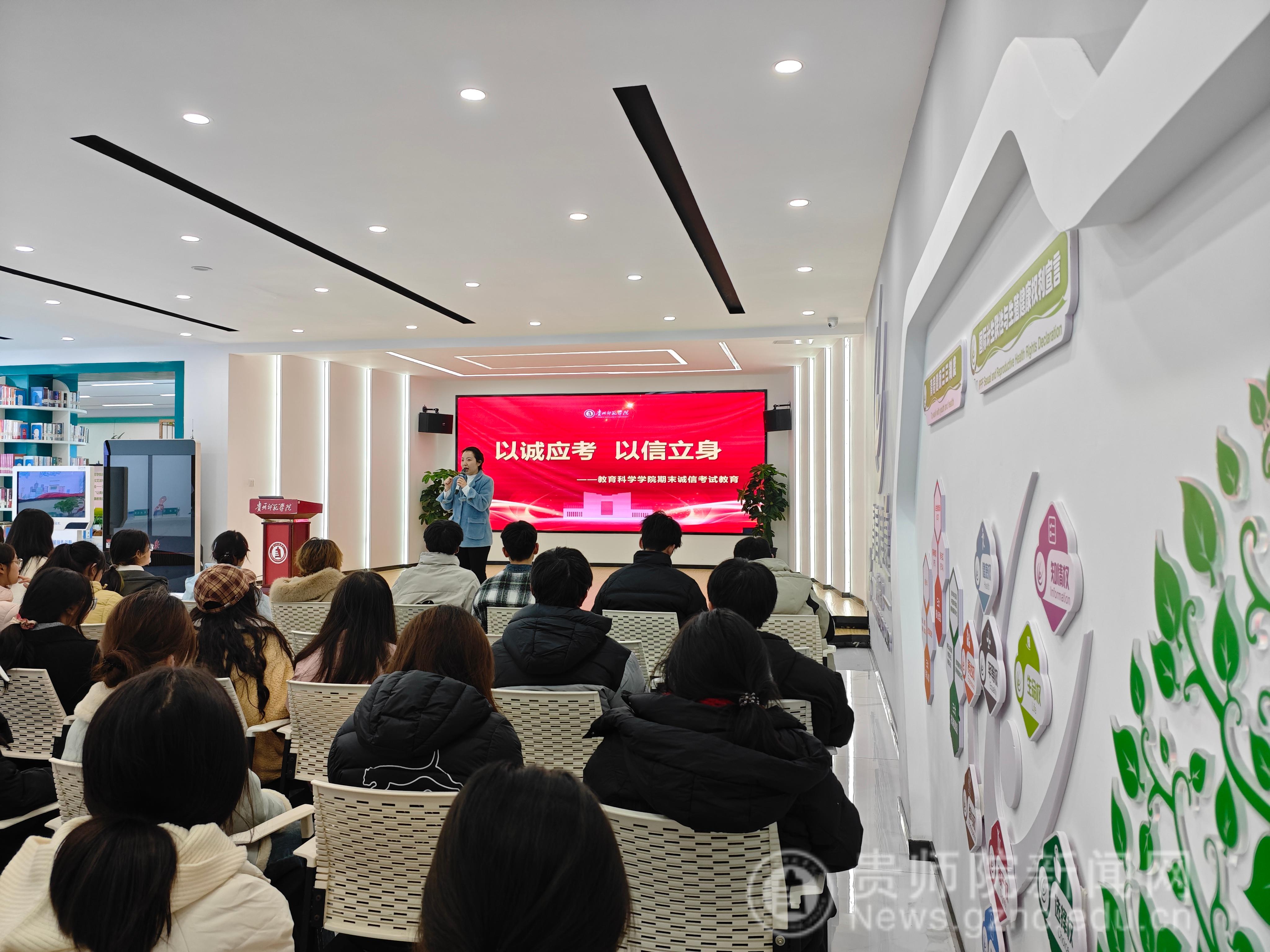 为严肃考风考纪,加强学风建设,引导学生树立诚信意识,2025年12月11日18:00,教育科学学院在大学生事务中心举办“诚信考试”主题教育会议。会议由教育科学学院团委书记张源主讲,2025级新生代表参加。