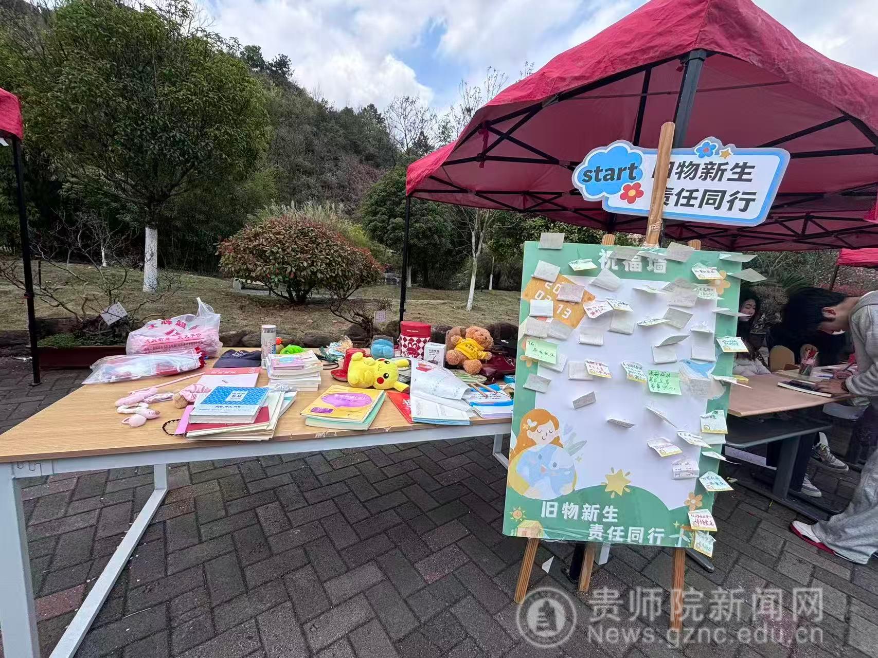 活动现场设置多个特色服务摊位,吸引众多师生驻足参与。在心理健康科普区,“心理小知识”抽奖问答以轻松有趣的形式普及情绪管理、压力应对等实用内容,打破对心理学的刻板印象;MBTI人格测试摊位前人头攒动,志愿者们为大家解读性格特质,并根据十六种人格类型派送定制礼品,引导大家探索自我、理解他人。“一起画春天”集体接力绘画区,大家在轻柔音乐中共同创作春日画卷,用色彩表达心情、释放压力,传递温暖治愈的心理能量;“旧物新生”环节中,毕业生们捐赠了大量物品,学弟学妹们写祝福就可以将其带走,剩余物资统一捐赠,传递了环保理念与爱心。活动现场气氛热烈,志愿者们热情引导、耐心讲解,将专业知识转化为有温度的服务实践。大家在互动体验中收获了知识、放松了身心,也深刻感受到志愿服务的魅力与意义。
