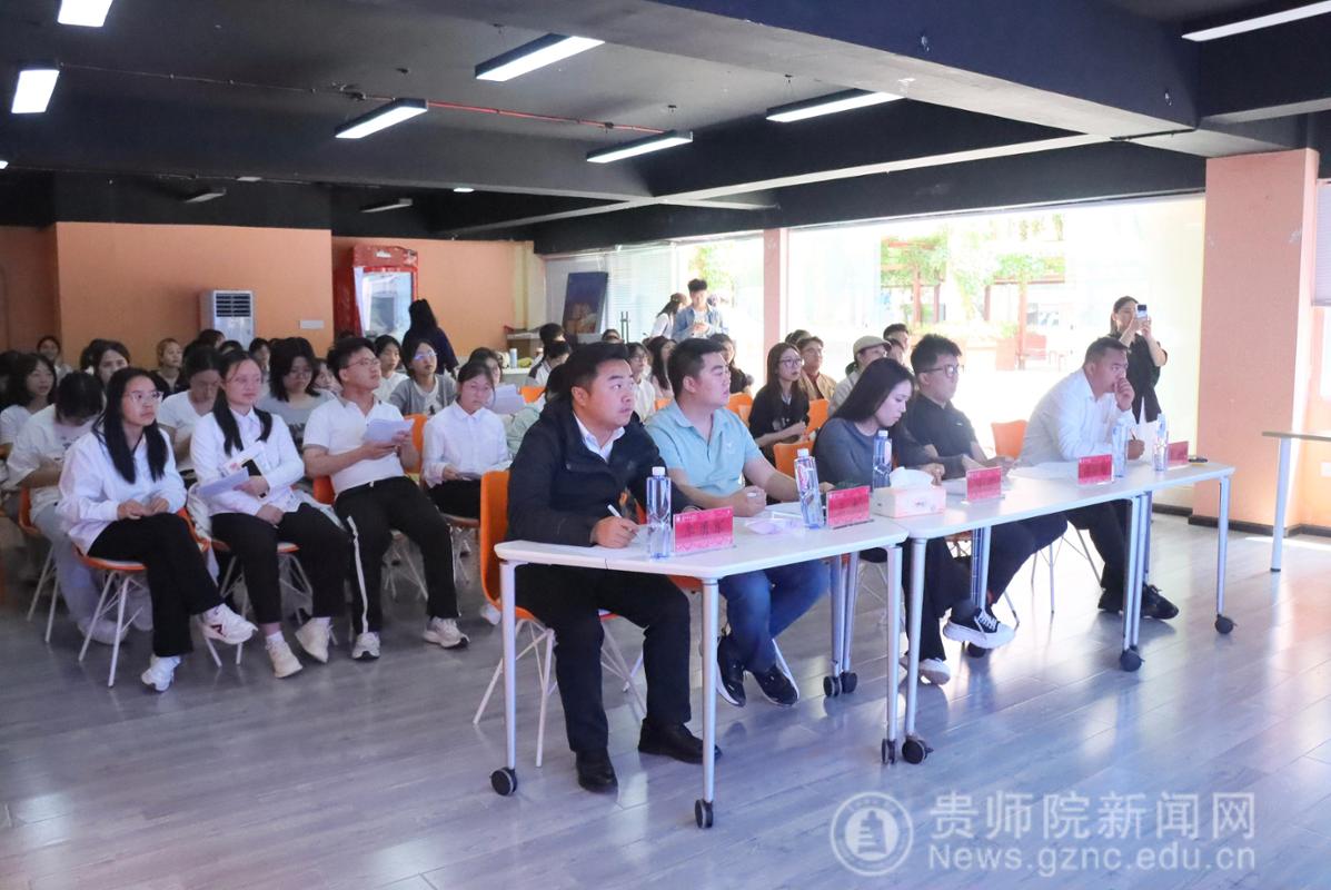 2026年4月18日中午,教育科学学院在贵州师范学院大学生青年创新创业中心举行教育科学学院2026年创新创业种子项目选拔赛。来自全院各专业的19支参赛队伍同台竞技,展现教科院学子的创新风采与学术潜力。贵州省江苏商会副会长兼会员企业部部长蒋华超、贵州众贤文化科技有限公司总经理刘苏、贵州省红十字服务联合会秘书长王树、贵州省慈善总会理事牟勇军、贵阳青年志愿者协会副秘书长李伟担任评委,学院团委书记张源出席本次选拔赛。